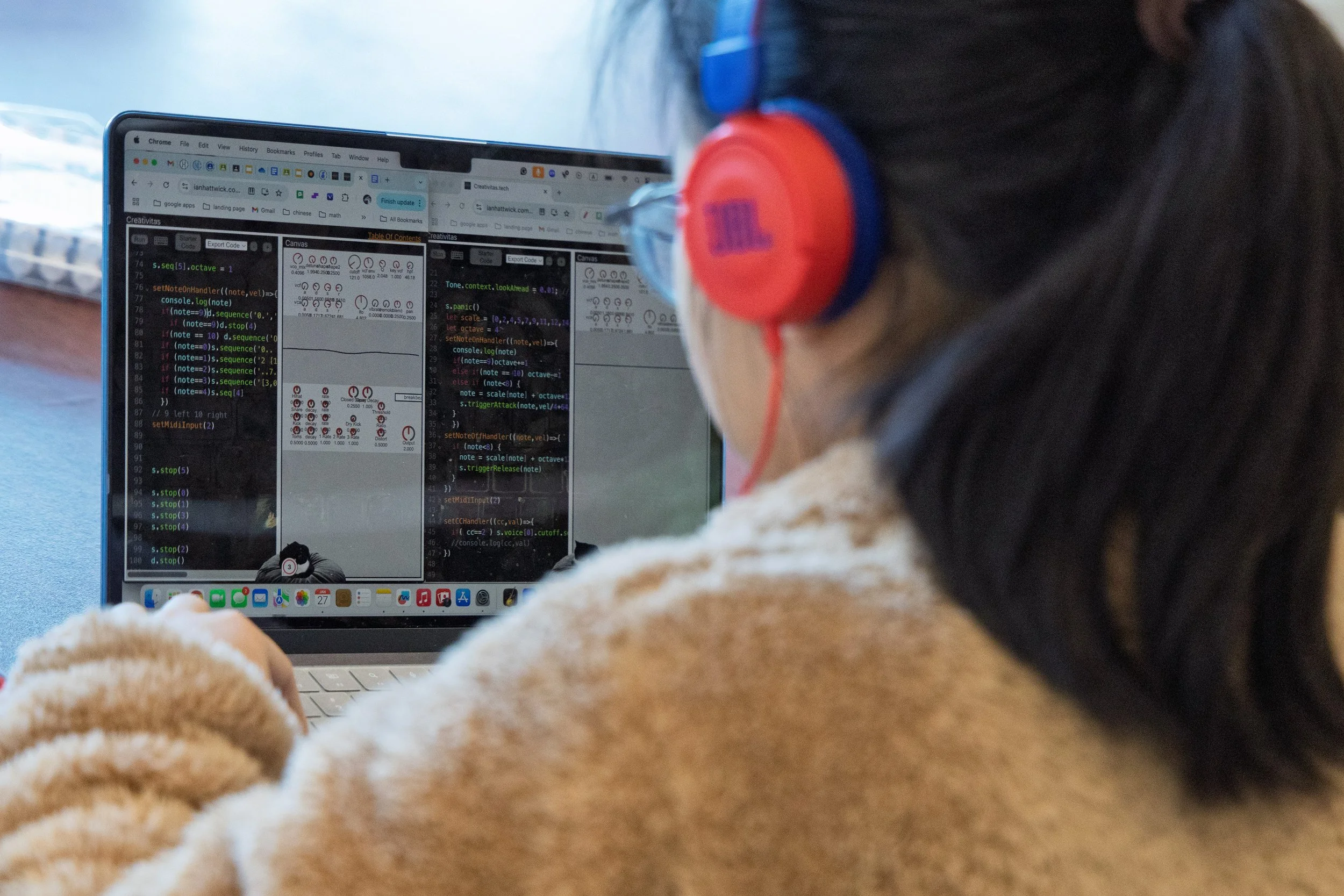 Creativitas is a course exploring the powerful blending of creativity and technology, demonstrating how STEM knowledge can be a tool for artistic expression. Over the year students will explore this intersection by designing and programming their own digital musical tools, and learning how to use technology to shape sound and create original music. Through hands-on projects, they will learn the fundamentals of music technology, sound synthesis, and digital composition, culminating in a short musical performance.